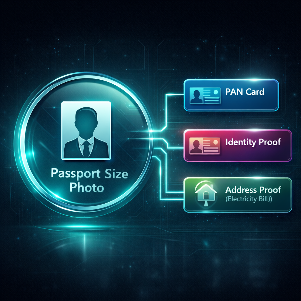 Just PAN, Aadhaar, and Electricity Bill. That's it. We handle the rest of the application process online.